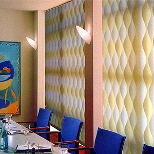 Ткань для Ваших изделий может быть изготовлена в форме Волны, и Ваш офис запомнится клиентам необычностью оформления окон. Можно заказать мультифактурные жалюзи - сшитые из разных тканей ламели, могут образовывать самые причудливые рисунки.