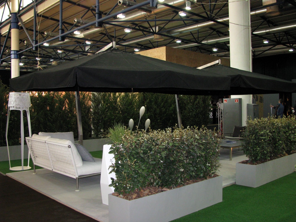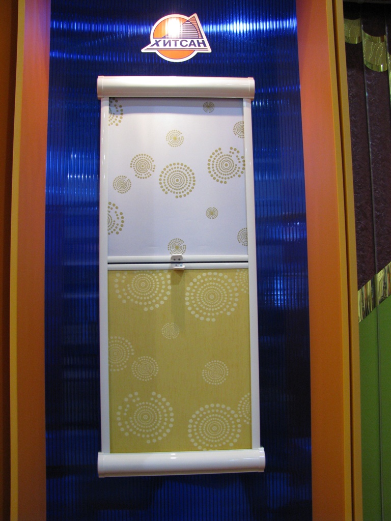 Смачна ВОДА :-) Календарь, нанесенный на жалюзи Надеемся, после выставки у «Хитсана» прибавится клиентов. Как розничных, так и постоянных партнёров по бизнесу. И на закуску. В соседнем павильоне проходила выставка, посвящённая мебели, дизайну и т.д. Мы зашли глянуть что там и как. И первое, что бросилось нам в глаза – это дизайн, вероятно, террасы или балкона, основным элементом которого были два огромных зонта. А это – солнцезащита !