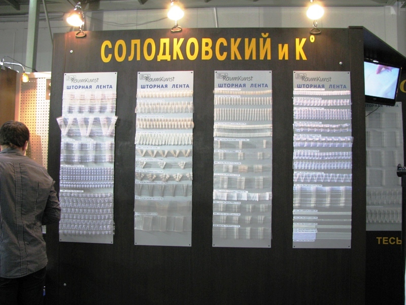 Известная компания из Харькова «Солодковский и К*» представила на своём стенде сразу несколько новинок. Во-первых, все мы знаем эту компанию как производителя различных видов солнцезащиты. Это и все виды жалюзи, и рулонные шторы, и шторы-плиссе. Образцы предлагаемой продукции можно было увидеть на стенде. Отсюда и первая новинка - горизонтальные алюминиевые жалюзи с шириной ламели 50 мм. По мнению специалистов компании, такие жалюзи будут хорошо смотреться на больших проёмах. Особенно в интерьерах в стиле high-tech. Вторая новинка относится к другому сегменту, в котором работает копания: продажа аксессуаров и фурнитуры для штор. Здесь были презентованы различные виды шторной ленты, шириной 15 см и комплектация для шторных карнизов, которую можно преобрести со склада в Харькове. И, конечно, не стоит забывать о том, что «Солодковский и К*» является официальным представителем компании «Magnum Metal» в Украине и продаёт со своего склада оборудование для производства жалюзи. Кроме этого, инженеры компании осуществляют гарантийное и постгарантийное обслуживание и ремонт оборудования Magnum, даже если станки были куплены у других поставщиков.
