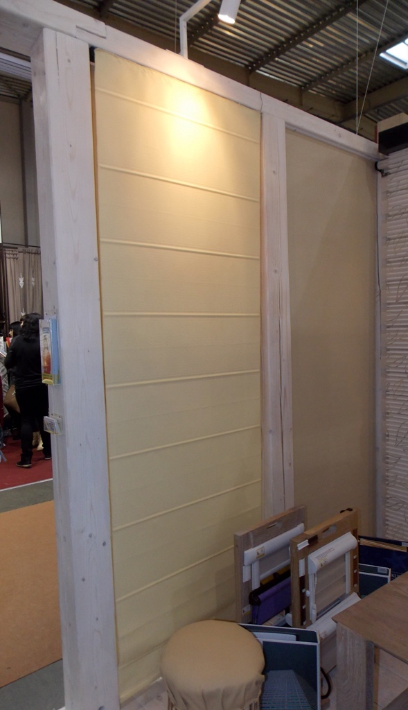 Основной же тематикой на стендах компании были шторы и различные аксессуары к ним. Поэтому основная масса новинок была именно из этой области. Что до солнцезащиты, то нам продемонстрировали новый вид деревянных жалюзи, которые теперь будет выпускть «Солодковский и К». А дальше – всё традиционно: рулонные шторы, шторы-плиссе, «День-Ночь»…