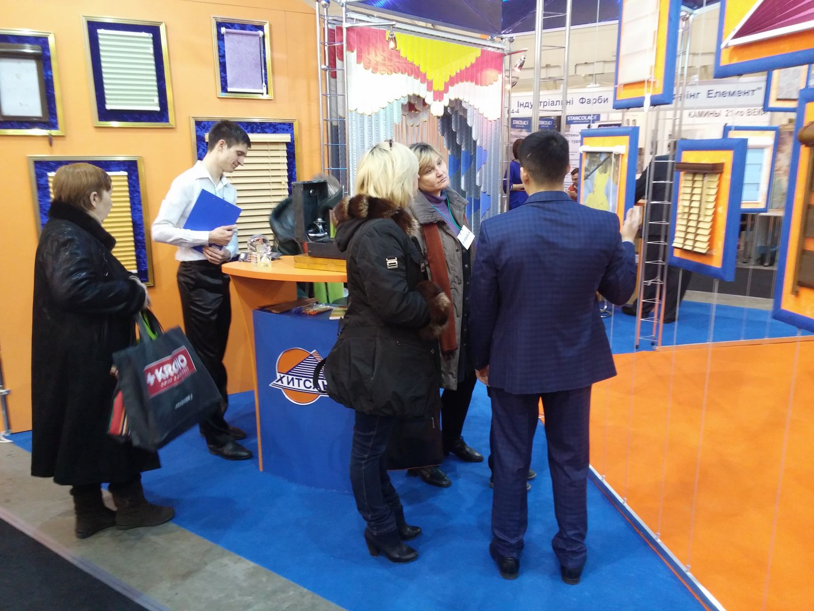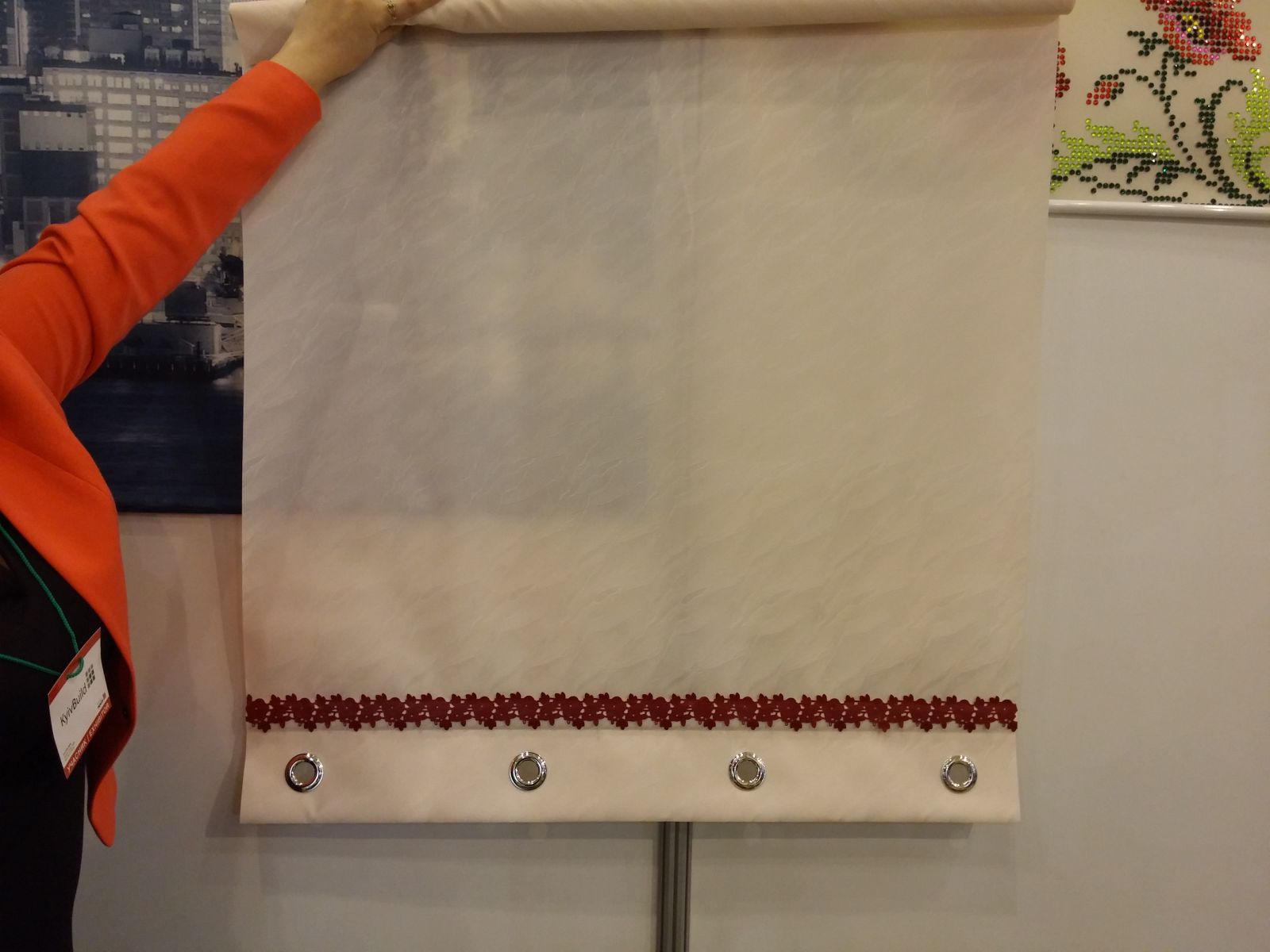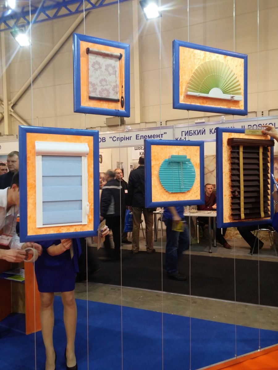 Было ещё несколько стендов с солнцезащитой. Например, компании "Франс гардинер Украина", представляющей различные виды рулонных штор. Причём не только из стандартных тканей, но и абсолютный хэнд-мейд.