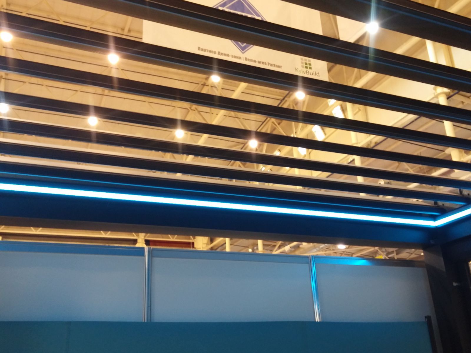 Он, как всегда, очень стильный. Сделан в виде перголы, крыша которой состоит из поворачивающихся ламелей. В закрытом состоянии ламели образуют ровный потолок, а при повороте угол можно регулировать. Управляется автоматически с помощью дистанционного пульта. Стильно, красиво и очень функционально. Боковины могут быть закрыты, по желанию заказчика, либо ZIP-системами с различными тканями, либо раздвигающейся плиссированной противомоскитной сеткой. Традиционно, именно на выставке KyivBuild выставляется известная одесская компания "Хитсан". Большой яркий стенд, на котором представлен весь ассортимент компании и её технические возможности.