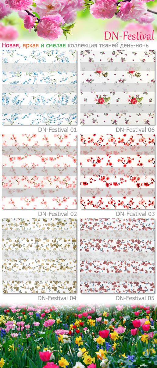 Ткани с цветочным  узором  DN-Melody и DN-Festival – истинная романтика!  Цветочные мотивы притягивают взгляд, они всегда актуальны - это  весна, нежность и свежесть.