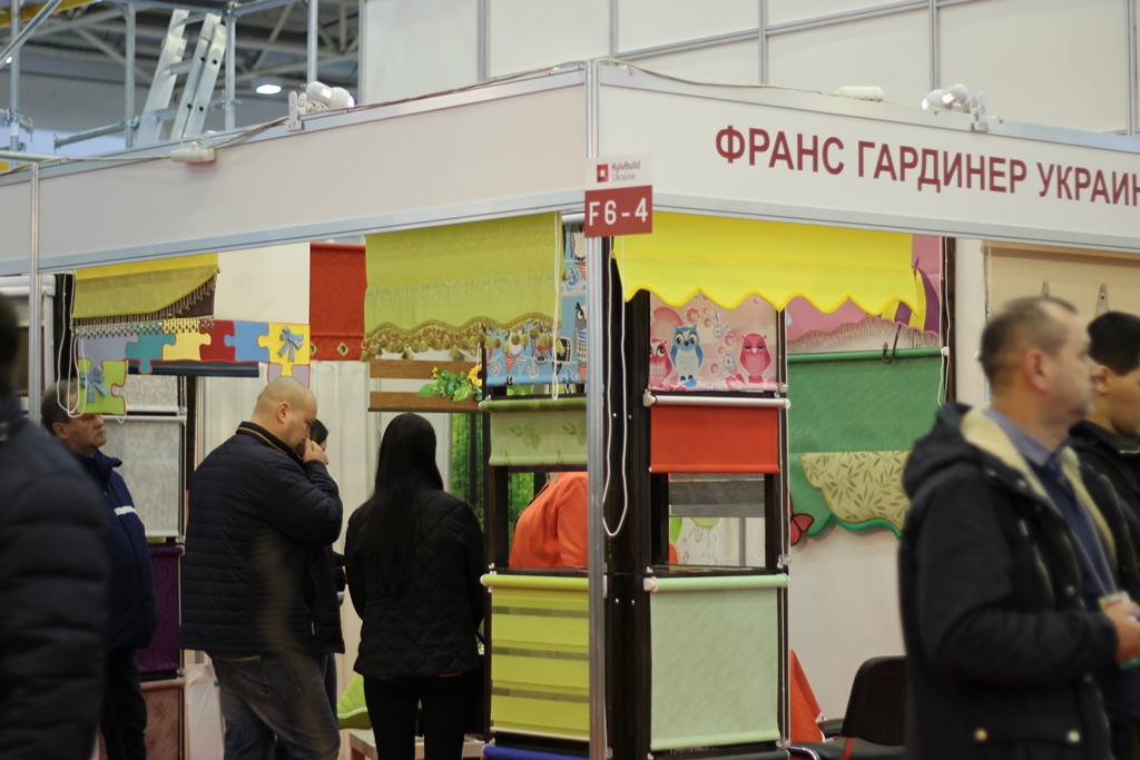 И, наконец, мы отметили приличное количество посетителей на стенде компании "Франс Гардинер Украина". Компания производит рулонные шторы, в том числе - с различными вариантами декора. Проявляет довольно высокую выставочную активность.