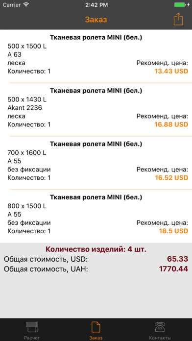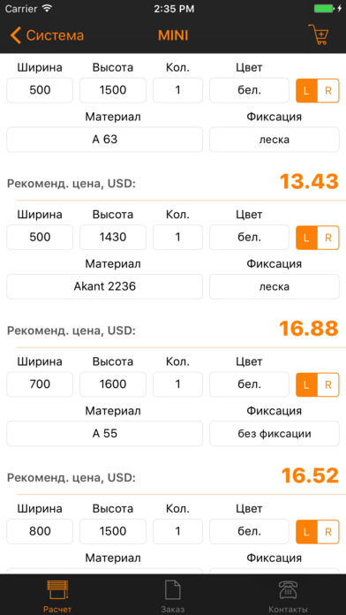Теперь немного о возможностях приложения. С его помощью можно рассчитать дилерскую стоимость готовых изделий, а также - рекомендованную стоимость изделий для клиента. В итоговой таблице можно будет увидеть общую закупочную и общую рекомендованную стоимость заказа по актуальному коммерческому курсу. Следующей приятной новостью от компании «Прок» является увеличение ассортимента тканей для тканевых ролет. Коллекцию пополнят ткани Aruba и Neo.
