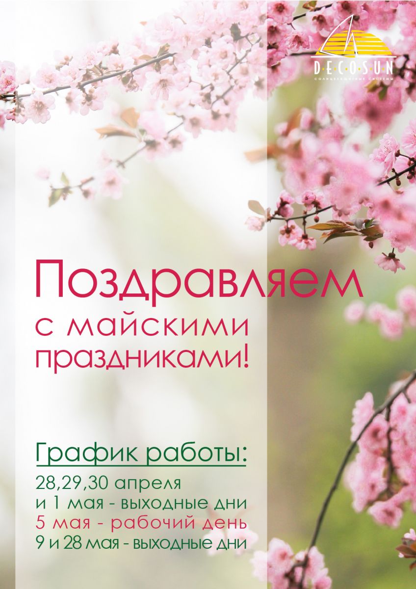 28.04. - 01.05. - вихідні дні