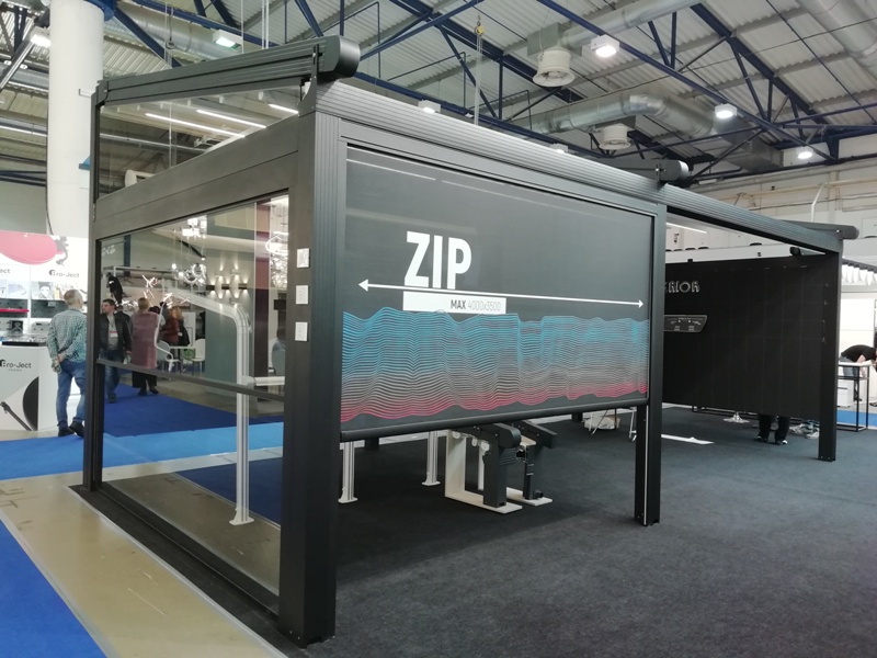 По нашим наблюдениям, стенд компании от выставки к выставке становится всё больше и больше за счёт новинок, внедряемых в производство. Из основных, презентованных в этом году - пергола из новых комплектующих с возможностью бокового остекления и "биоклиматическая" пергола с поворотными ламелями, которые, к тому же, ещё и сдвигаются.