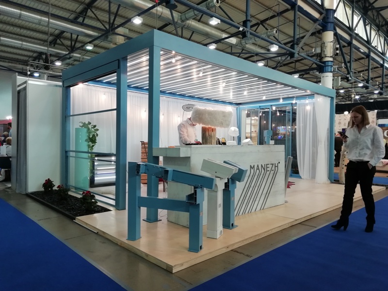 Да и много чего ещё. Если интересно - зайдите к ним на стенд. Не пожалеете! И, наконец, Манеж на этой выставке сделал упор на свою биоклиматическую перголу M'Ocean с поворотными ламелями. Собственно, их стенд и представляет собой перголу с боковым остеклением, вертикальным и горизонтальным. Как всегда - стильно качественно и со вкусом.