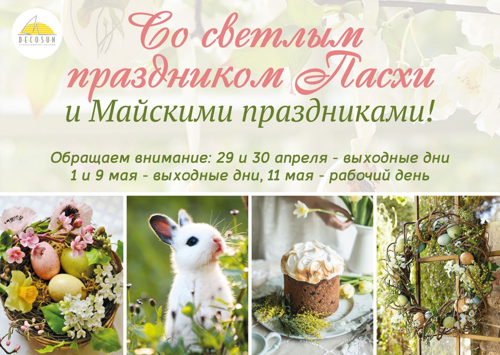График работы компании Декосан в праздничные дни