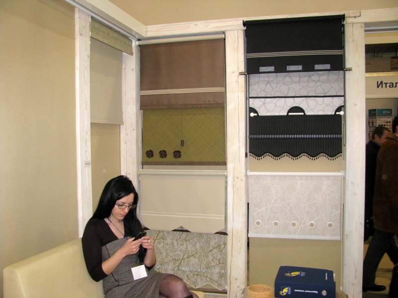 Была анонсирована система рулонных штор «Зебра» (аналог – «День\ночь» , «Делайт») с тонкой тканью на трубе 19 мм, довольно привлекательная и компактная . Еще одним интересным предложением для клиентов наверняка станет римская сборка тканевой ролеты в коробе и декорирование короба тканью.