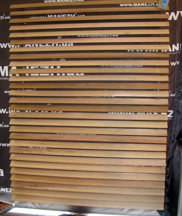 Это, прежде всего, карнизы для штор с электроприводом корейского производства. Было представлено несколько модификаций этих карнизов. Управление шторами на таких карнизах может осуществляться либо с настенного переключателя, либо с дистанционного пульта, либо быть интегрированным в систему «Умный дом». Другой интересной новинкой на стенде была конструкция, напоминающая террасную маркизу типа «Пергола», но изготовленная из ткани для штор и использующаяся внутри помещения. Поражал воображение ассортимент представленной продукции на стенде другой известной украинской компании-производителя, черкасской фирмы «Манеж».