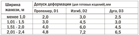 Так как натуральный материал не может быть абсолютно ровным, существуют определённые допуски для всех этих видов деформаций. Для удобства восприятия, они представлены в виде таблички: