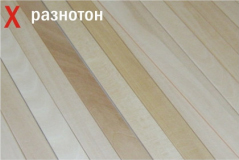 При этом, торцы ламелей должны быть обязательно затонированы красителем. Исключение могут составлять только изделия из древесины светлых пород. Также, не тонируются отверстия под шнур для всех видов дерева. Отличия по тону из-за разной структуры исходных материалов могут быть между ламелями и аксессуарами: колокольчики и трость управления. Сильный разнотон между ламелями недопустим! Либо должен быть согласован с клиентом.