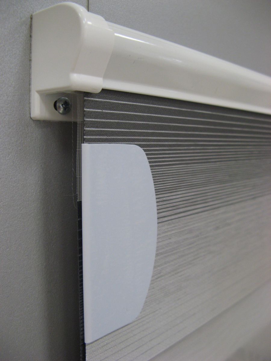 Система рулонных штор День-Ночь - DUODUO представляет собой миниатюрную систему рулонных штор День-Ночь. Её основная фишка - отсутствие цепочного механизма управления. Такой конструктив гарантирует полную безопасность детей при повседневном использовании.